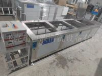 工作原理 半自動多槽超聲波清洗機的工作原理主要是將功率超聲頻源的聲能轉換成機械振動,通過清洗槽壁將槽中的清洗液輻射到超聲波。在超聲波的作用下,槽內液體中的微氣泡會保持振動,當聲壓或聲強達到一定程度時,氣泡會迅速膨脹并突然閉合,產生沖擊波和高壓,從而破壞不溶性污物并使其分化于溶液中。 特點和優勢